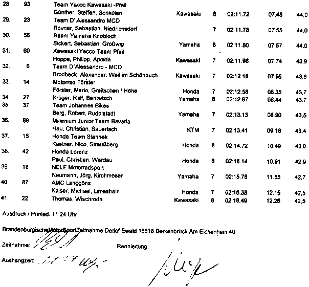 1. 6 Buchholz Racing Team Linke. Mathias 17154 Neukaien Kawasaki 8 1.49,96 39,29 km/h