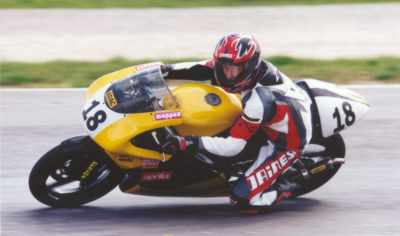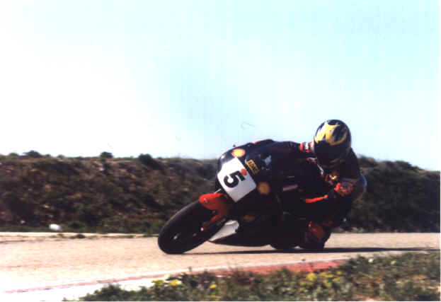 Alex mit RS 125 in Kurvenlage (Ledenon)